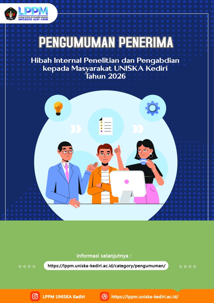 Kediri, 24 April 2026. Universitas Islam Kadiri (UNISKA) Kediri melalui Lembaga Penelitian dan Pengabdian kepada Masyarakat (LPPM) secara resmi mengumumkan daftar penerima Hibah Internal Tahun 2026. Pengumuman ini tertuang dalam surat bernomor 085/040.1.6/HM.06.03/IV/2026. Berdasarkan hasil seleksi yang telah dilaksanakan, sejumlah dosen di lingkungan UNISKA Kediri dinyatakan lolos sebagai penerima pendanaan hibah internal. Program hibah ini mencakup berbagai skema, meliputi penelitian dan pengabdian kepada masyarakat, baik dalam bidang eksakta maupun non-eksakta.